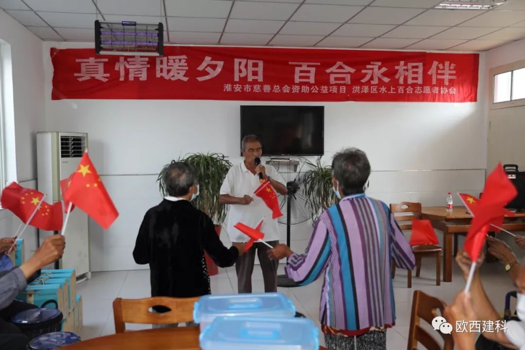 金風送爽,丹桂飄香,國慶將至,普天同慶。近日,江蘇歐西建材科技發展有限公司攜手淮安市洪澤區水上百合志愿者協會、區發改委黨總支、區朱壩街道社區衛生服務中心及愛心志愿者們前往朱壩街道敬老院看望慰問生活在這里的老人,開展了“敬愛老人 奉獻愛心”慰問活動。 歐西及發改委志愿者們為老人們送去了慰問品和防疫物資,并送上美好祝福。在親切的祝福問候聲中,讓每一位老人感受到了家庭般的溫暖,臉上綻開了幸福的笑容。現場醫護人員不僅為老人們一個個進行體檢,還給他們普及慢性病防治知識。