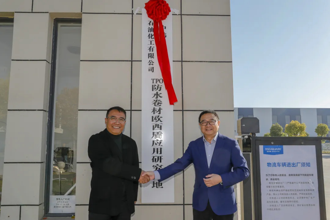 中韓(武漢)石油化工有限公司黨委書記、董事長、總經理劉百強為歐西盾TPO防水卷材應用研發(fā)基地授牌,至此,雙方合作邁入嶄新階段,將共同致力于推動中韓石化超軟聚丙烯在TPO防水卷材領域的技術革新與應用拓展。